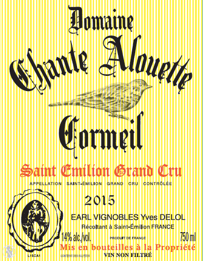 Domaine Chante Alouette Cormeil bouteille 2015 Saint Emilion Grand Cru
