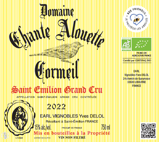 Domaine Chante Alouette Cormeil 2022 Saint Emilion Grand Cru