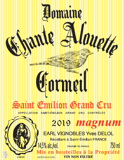 magnum Domaine Chante Alouette Cormeil 2019 Saint Emilion Grand Cru AOC