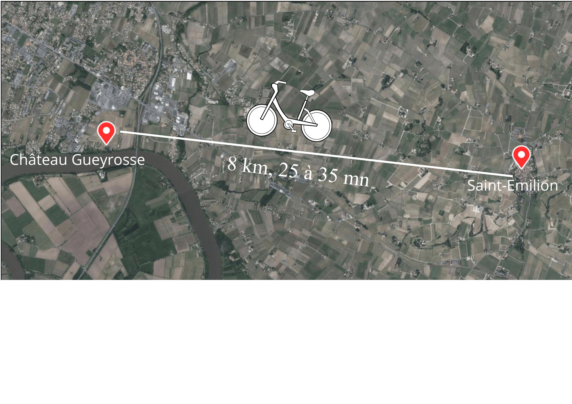 🚴 7–8 km depuis / from Saint-Émilion