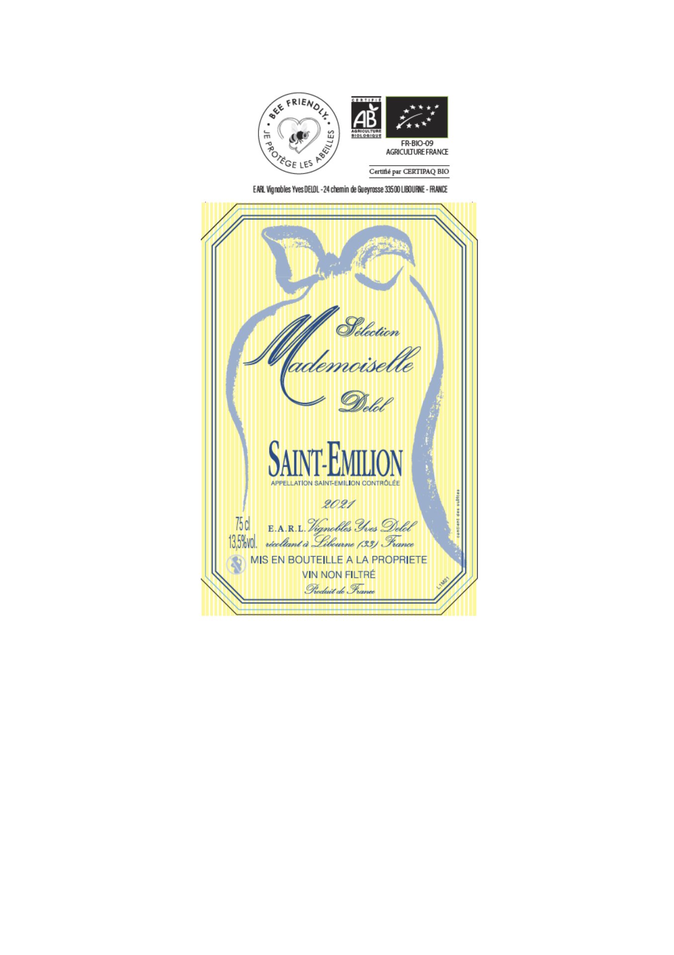 Sélection Mademoiselle Delol bouteille 2021 Saint Emilion